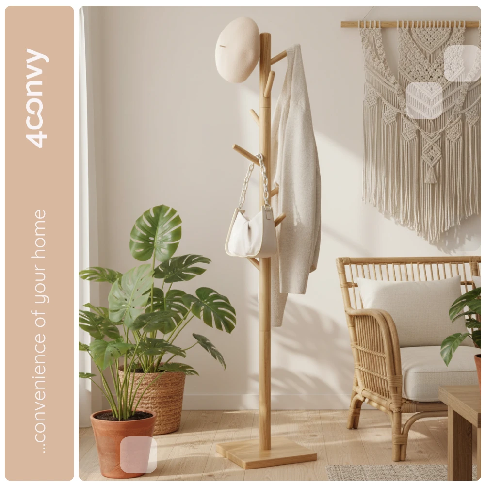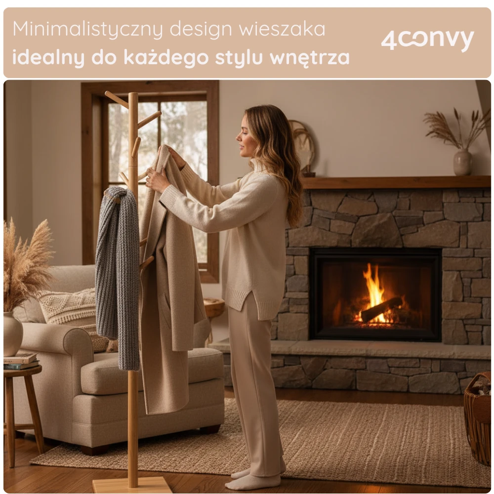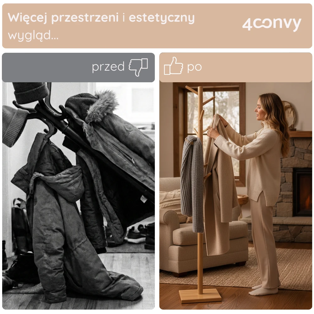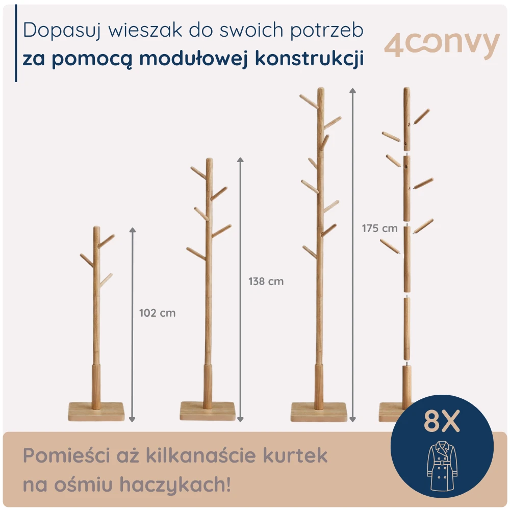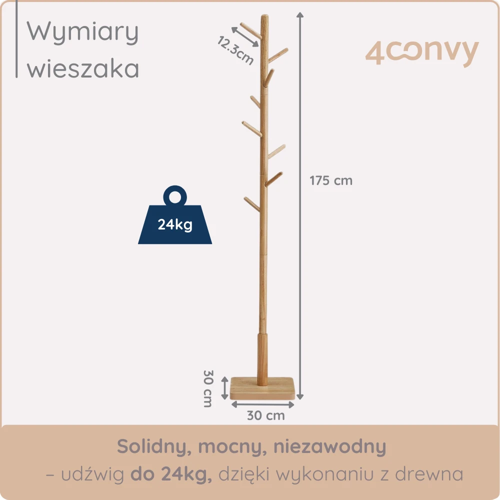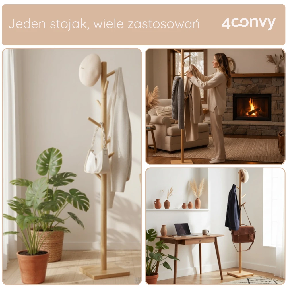 - POJEMNY I UNIWERSALNY - Wieszak posiada aż osiem haczyków i pomieści nawet kilkanaście płaszczy lub kurtek, co sprawia, że doskonale sprawdzi się w sypialni, garderobie, przedpokoju, a także w biurze.