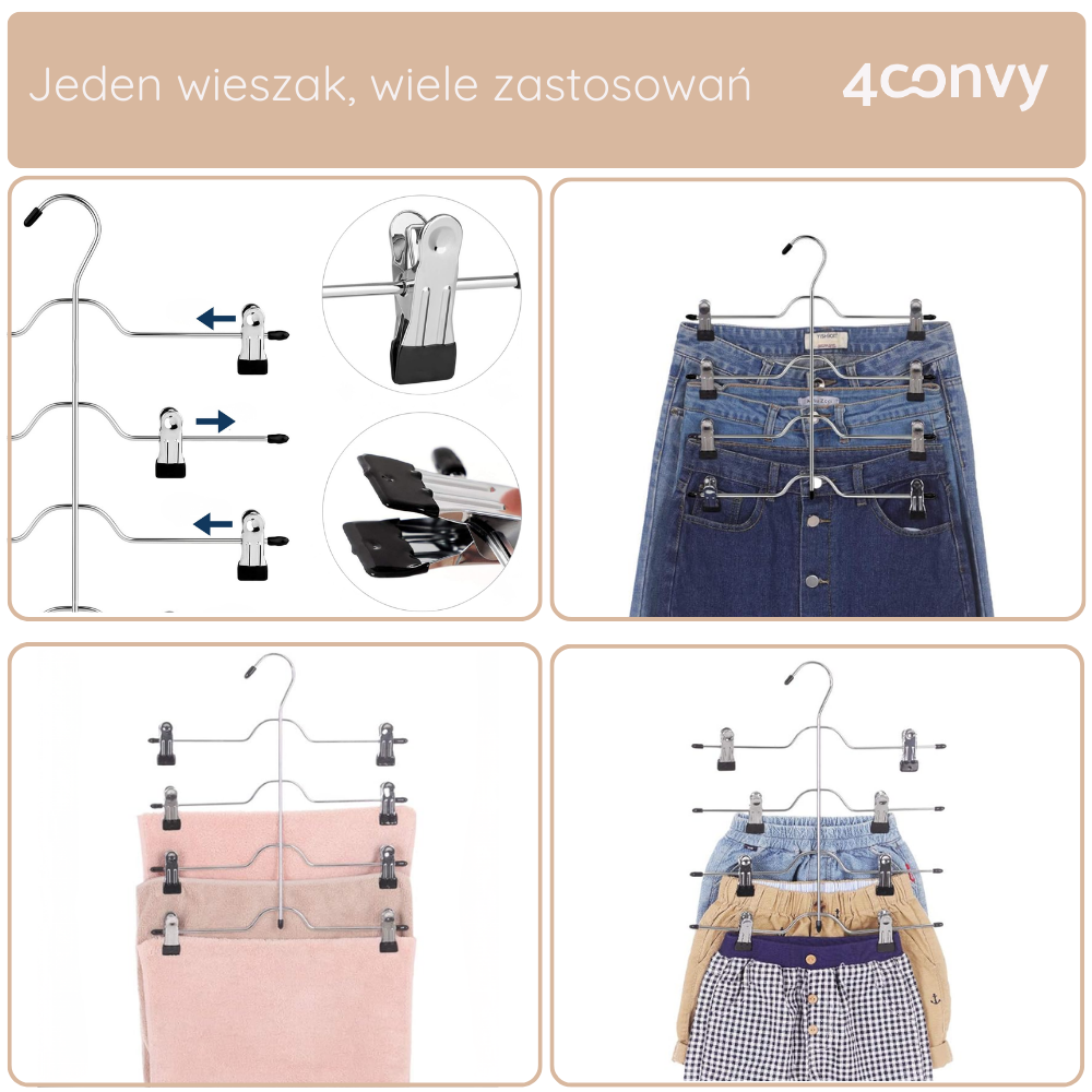 Wieszaki na ubrania klipsowe 4-poziomowe 3 szt.
